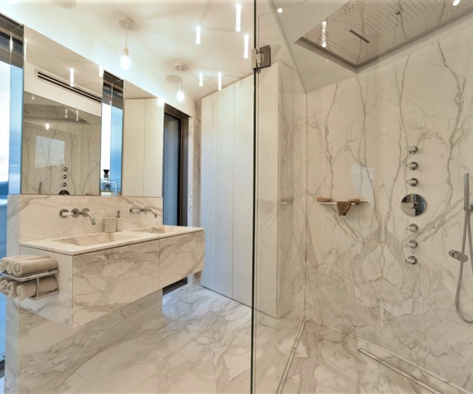 With more than 40 years of field experience, Industria Marmi Ferrari gained great renown in the creation and sale of bathrooms in marble and other natural stones. We also create project-based bathrooms, designed with all the materials at our disposal, each available in different finishes such as polished, antiqued, brushed, smoothed, sandblasted, rolled, scratched, and bush-hammered. We project full bathrooms, complete with every piece of furniture such as solid sinks, shower trays, decorative frames and inlays.