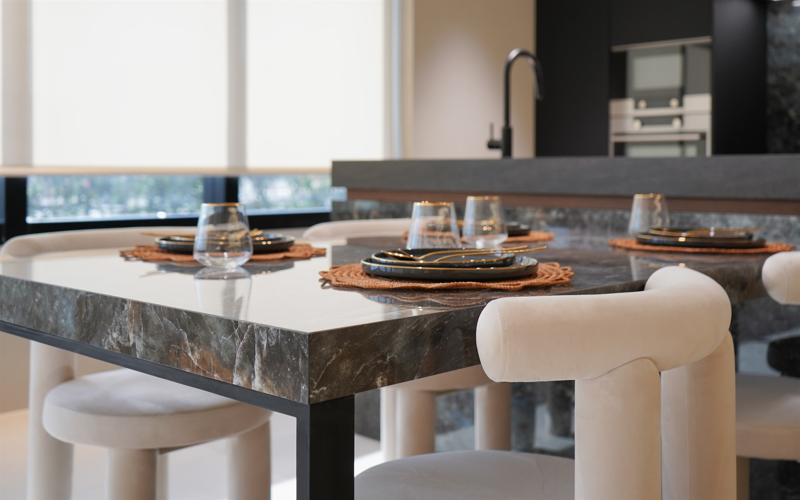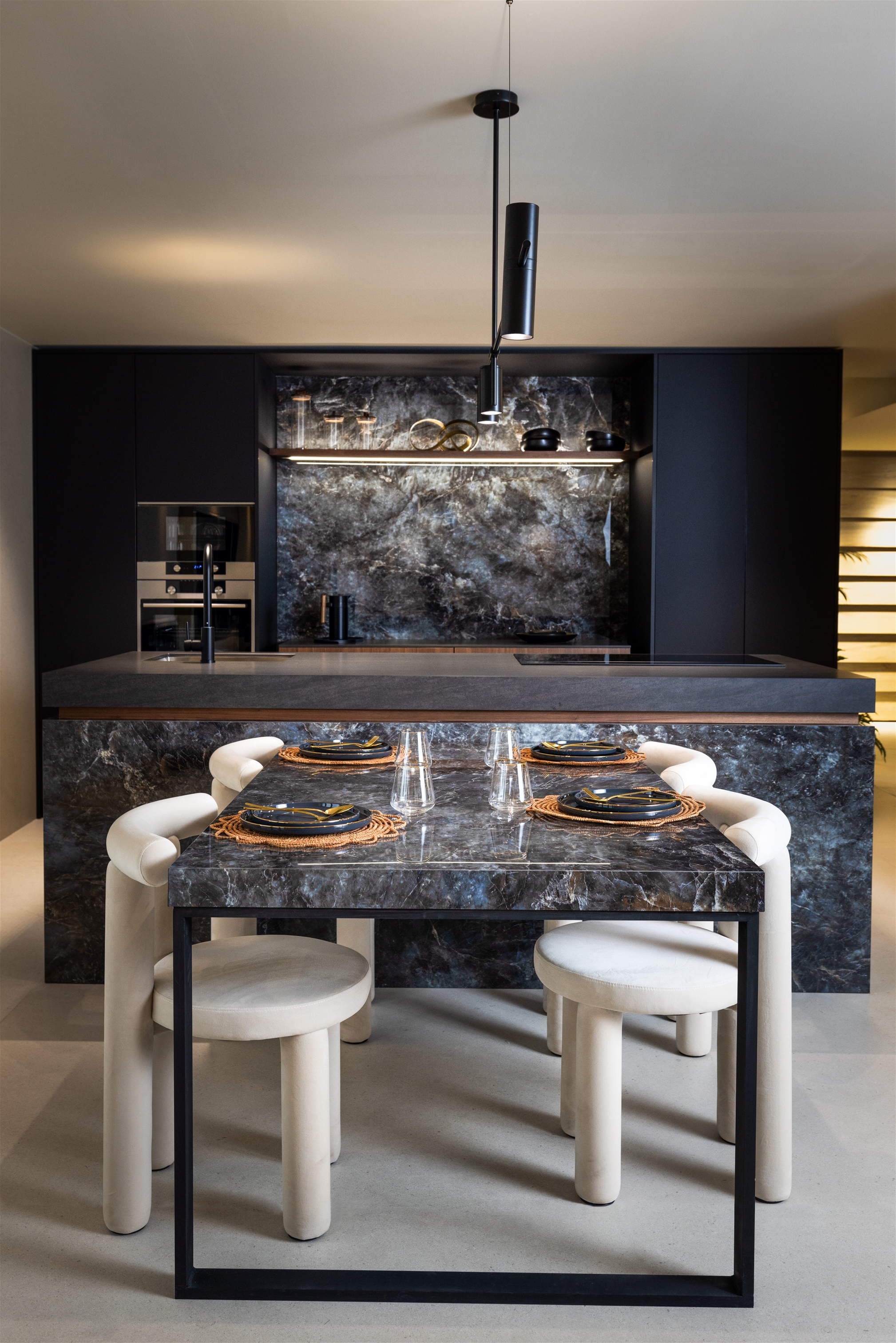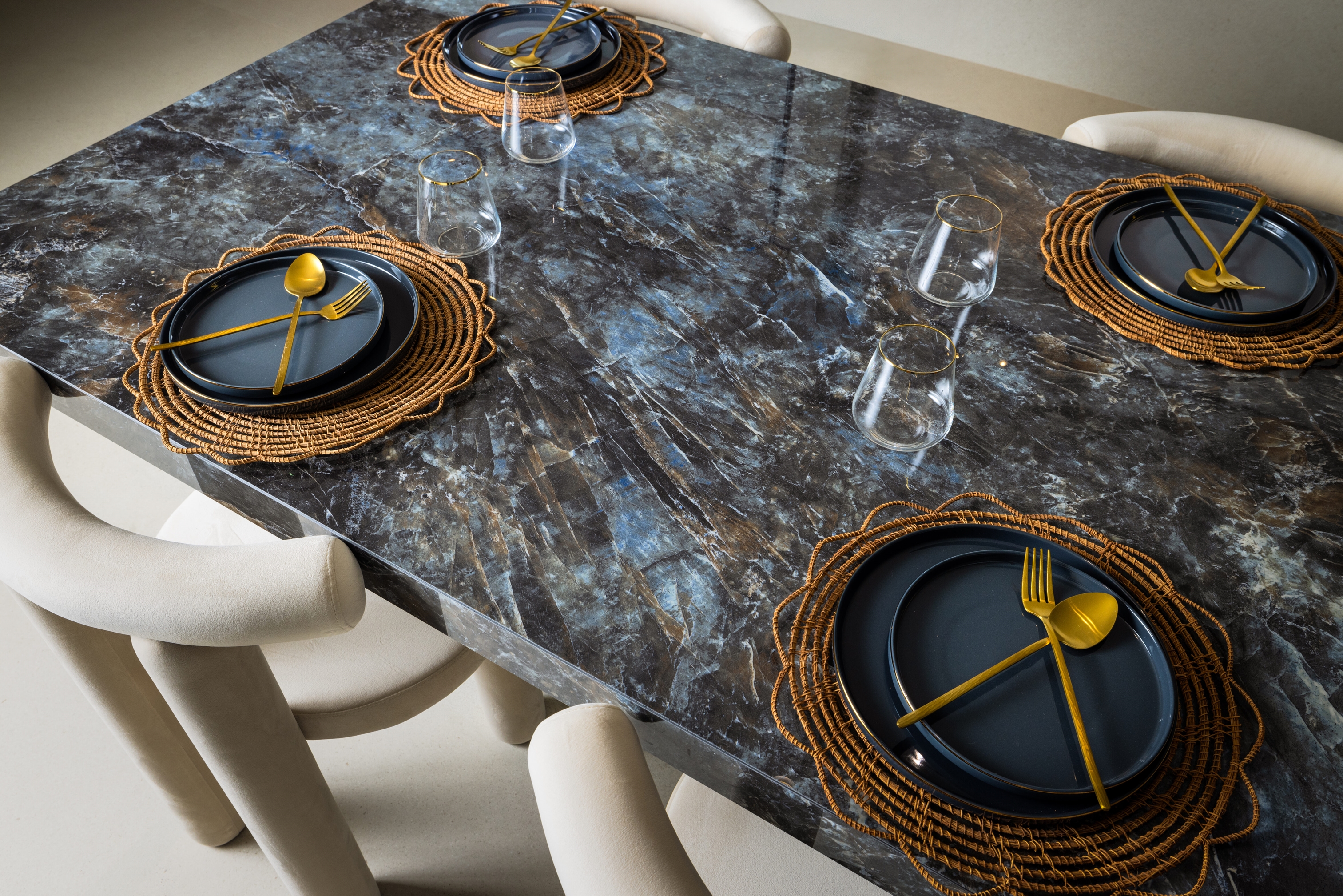 This design evokes the appearance of precious stones, with reflections that seem to dance as the light changes, contributing to a sophisticated and magnetic atmosphere.