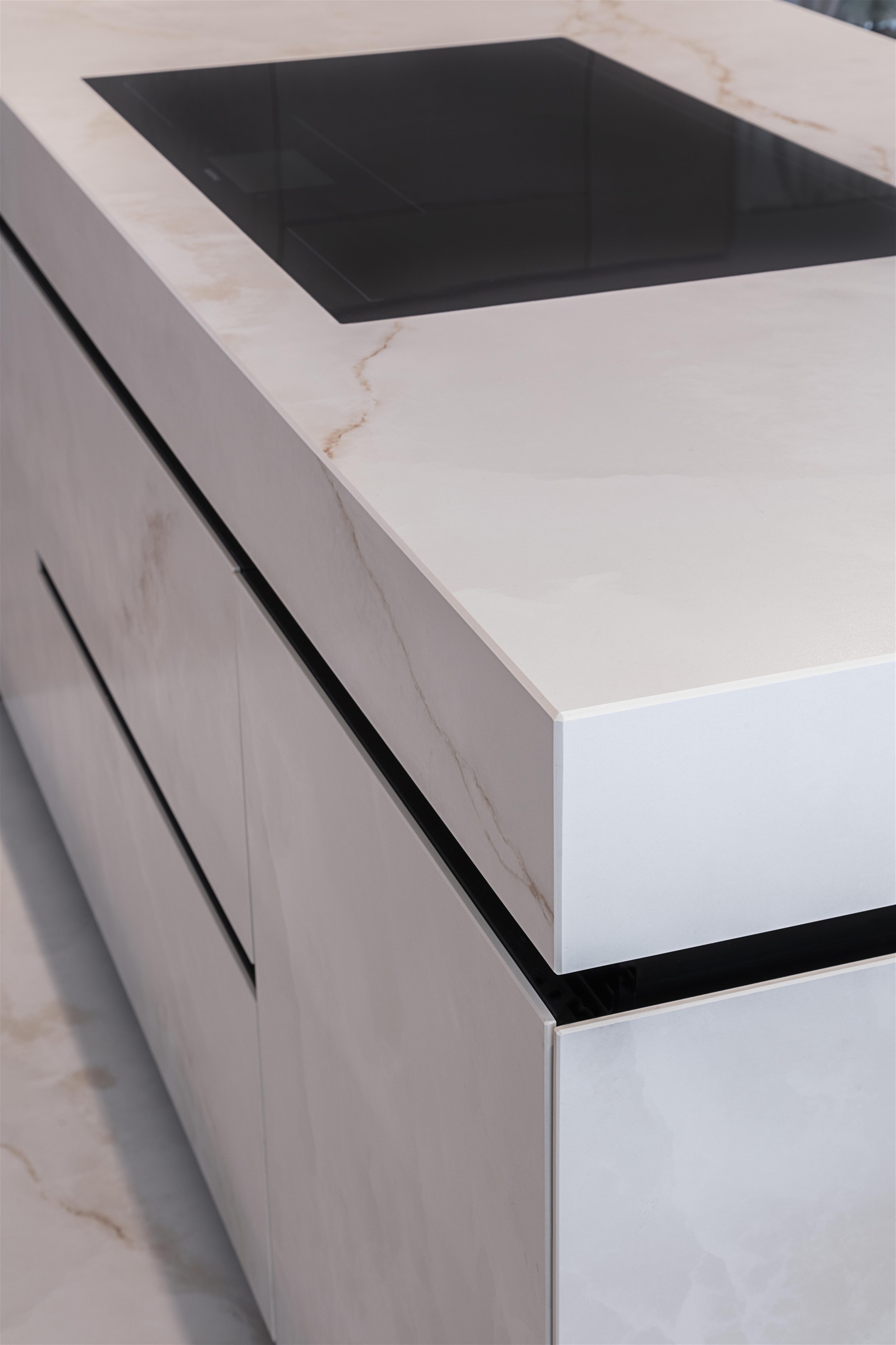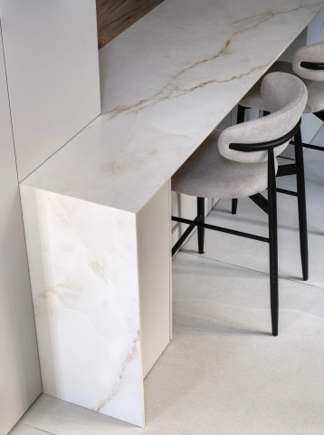 Onyx Lux White represents the perfect fusion of brightness, purity and sophistication. Inspired by the ethereal beauty of natural onyx, this model stands out for its radiant white background crossed by delicate golden veins that lend warmth, elegance and subtle visual richness.
