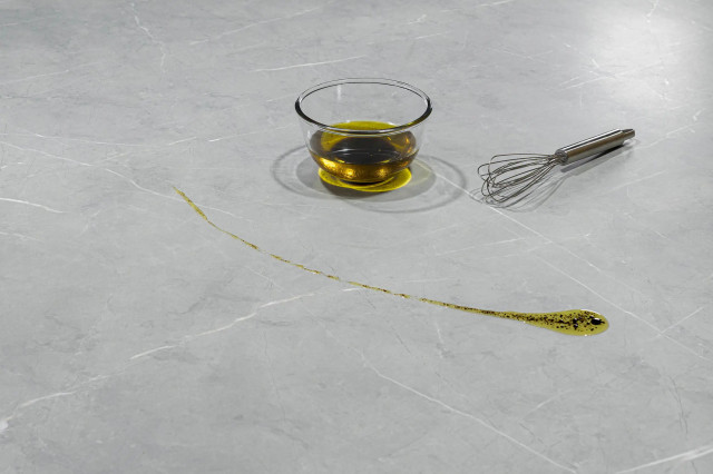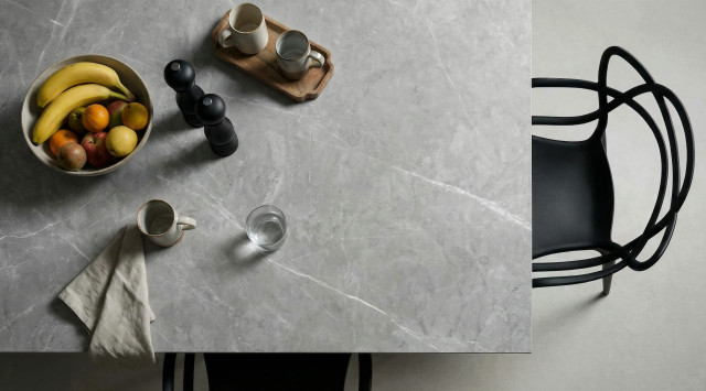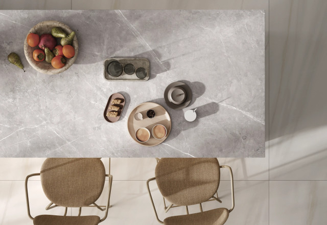a superficie presenta una venatura sottile, creando una texture sobria e raffinata. Questa scelta è particolarmente apprezzata da architetti e designer per la realizzazione di spazi moderni e armoniosi. Versatile, Armani Silver si presta perfettamente a piani di lavoro, pavimenti e decorazioni.