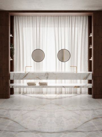 Il gres Aura Lux White si distingue per l'eleganza, infondendo lusso e una personalità unica, trasformando l'ordinario in un palcoscenico di bellezza duratura; la rende ideale per progetti diversi, dai bagni lussuosi alle cucine contemporanee, fino agli spazi commerciali che aspirano a un tocco di raffinatezza.