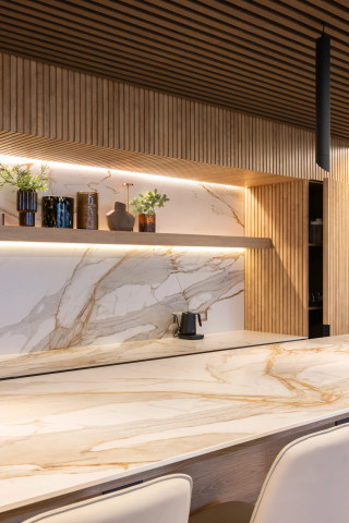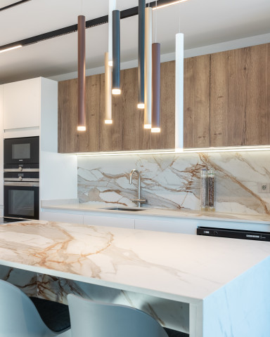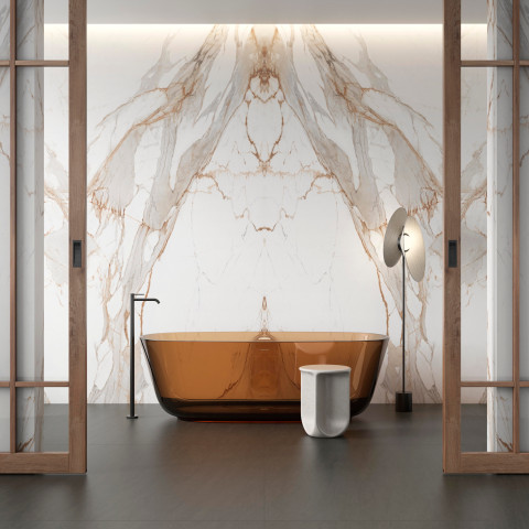 La loro superficie riflette la luce in modo sorprendente, creando un gioco di ombre e colori che cattura l'occhio e aggiunge profondità allo spazio. Queste lastre, oltre a essere esteticamente affascinanti, sono anche estremamente resistenti e facili da pulire, il che le rende ideali per una vasta gamma di applicazioni, dai pavimenti ai rivestimenti murali. La combinazione di bellezza e funzionalità le rende una scelta eccellente per chi desidera un design d'interni che non passi inosservato, mantenendo al contempo un'eleganza senza tempo.